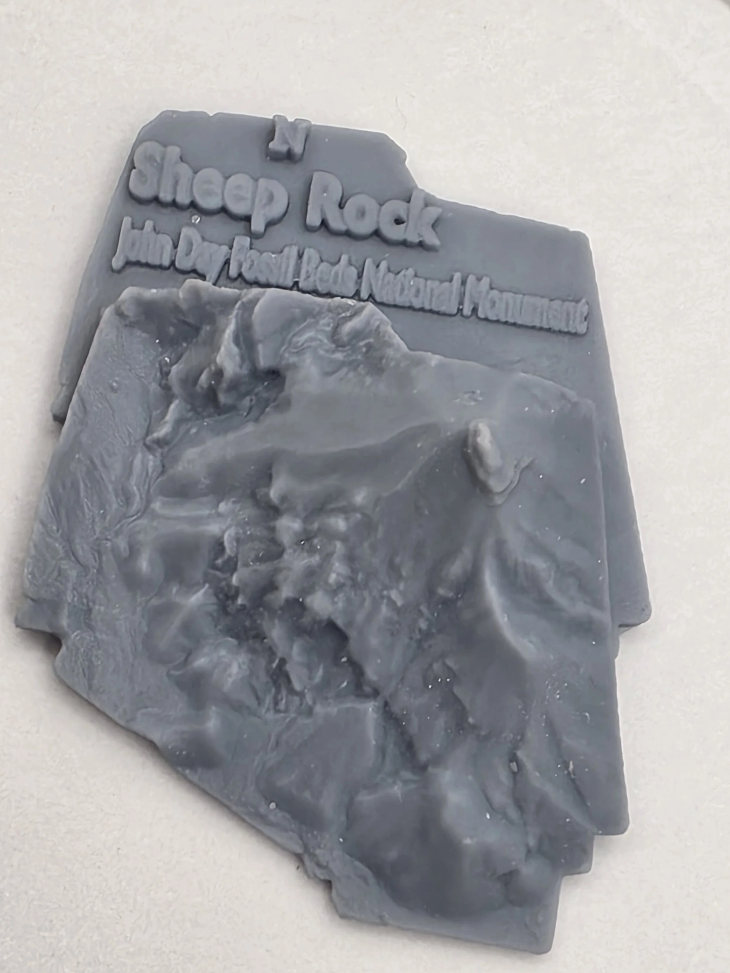This detailed 3D model captures the distinctive terrain of the Sheep Rock Unit in Oregon’s John Day Fossil Beds National Monument. Known for its striking blue-green layers of volcanic claystone and tuff, Sheep Rock records a dynamic period of ancient volcanic activity and evolving ecosystems. The model highlights the fine stratification and erosional features that make this site a key record of the Eocene–Oligocene transition. Designed by geologists, it offers a hands-on way to explore Oregon’s deep geologic history.